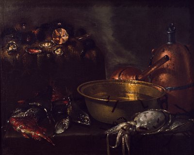 Giuseppe Recco (* 1634 a Napoli; † 29 maggio 1695 ad Alicante) è stato un pittore napoletano di nature morte.rnrnGiuseppe Recco, figlio di Giacomo Recco, era già in vita un celebre artista.rnrnDurante un viaggio in Lombardia, studiò l'opera di Evaristo Baschenis e, come il padre, divenne un pittore di nature morte floreali naturalistiche. Dopo il suo ritorno a Napoli, tuttavia, passò alle scene di pesce, selvaggina e cucina, influenzato da Caravaggio e dalla sua cerchia.rnrnLe sue opere sono caratterizzate da composizioni chiare basate su un equilibrio di linee orizzontali e verticali, considerate un tipico stile napoletano. A partire dal 1670 circa, le sue composizioni mostrano uno stile più barocco e decorativo.