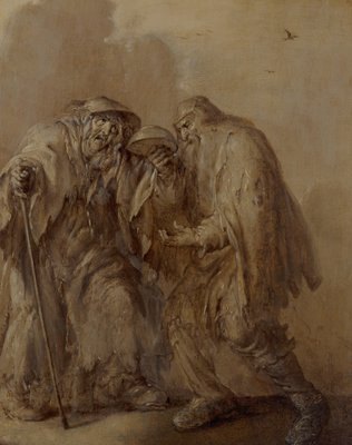 Coppia di anziani mendicanti che regge una ciotola vuota rovesciata; en brunaille (olio su tavola)(An elderly beggars' couple holding an empty bowl upturned; en brunaille (oil on panel))Adriaen Pietersz. van de Venne |