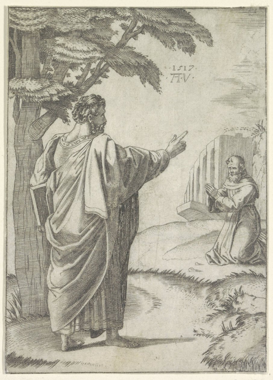 San Paolo e un monaco francescano(Heilige Paulus en een Franciscaner monnik)Agostino Veneziano(print maker) |