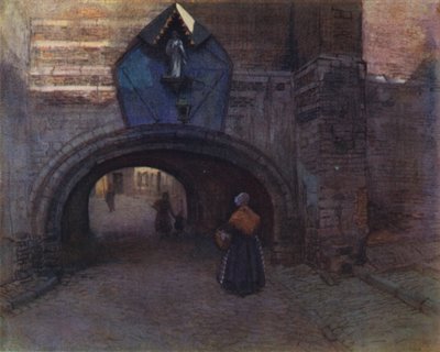 Arco sotto la Vieille Boucherie, Anversa (litografia a colori)(Archway under the Vieille Boucherie, Antwerp (colour litho))Amedee (after) Forestier |