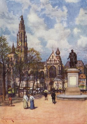 La Place Verte, Anversa (litografia a colori)(The Place Verte, Antwerp (colour litho))Amedee (after) Forestier |