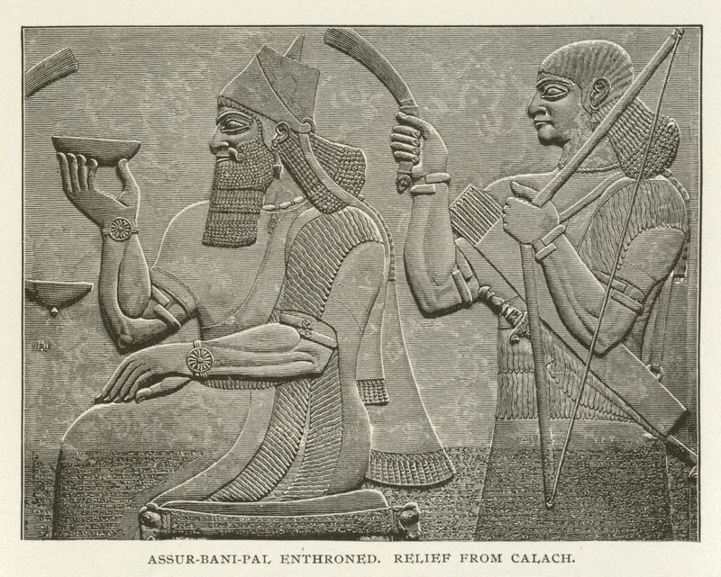 Assur-bani-pal sul trono, rilievo da Calach(Assur-bani-pal enthroned, relief from Calach )American School |