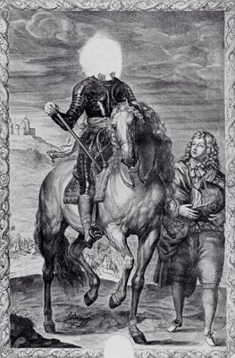 Ritratto equestre deturpato di Carlo I, inciso da Pierre Lombart (incisione) (foto b/n)(Defaced equestrian portrait of Charles I, engraved by Pierre Lombart (engraving) (b/w photo))Anthony van (after) Dyck |