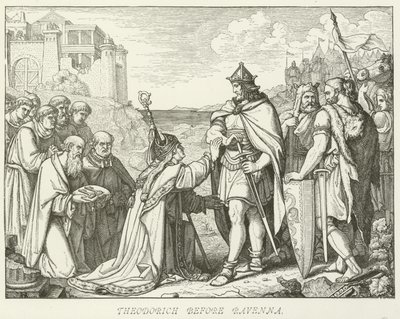 Teodorico il Grande davanti a Ravenna, 493 (incisione)(Theodoric the Great before Ravenna, 493 (engraving))Anton Dietrich |