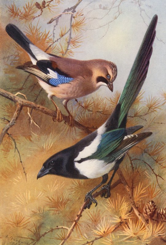 Ghiandaia, Gazza(Jay, Magpie (colour litho))Archibald Thorburn |