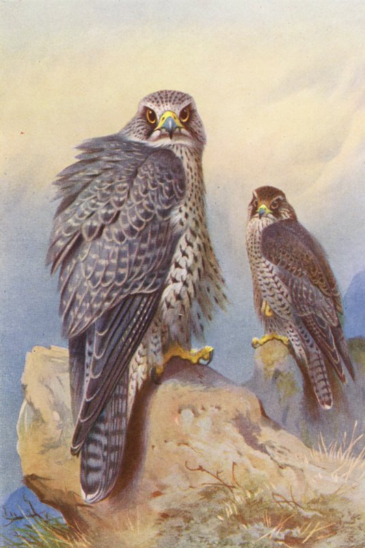 Falco islandese, Girfalco(Iceland Falcon, Gyr Falcon (colour litho))Archibald Thorburn |