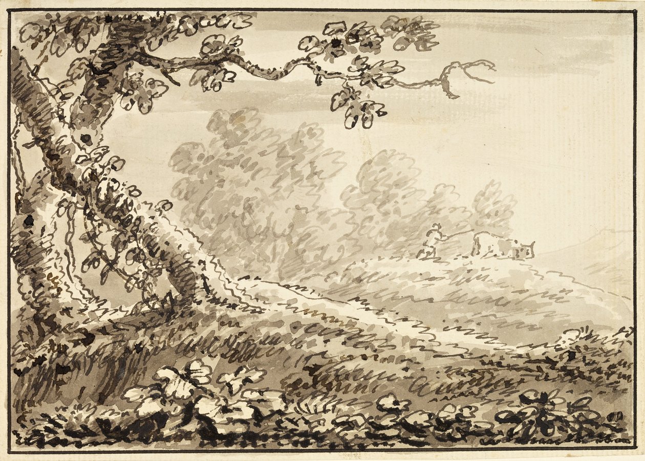 Paesaggio con uomo che guida una mucca(Landscape with man driving a cow (ink on paper))Arthur Devis |