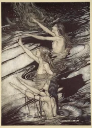 Per ascoltare la musica della sirena. Una scena da 'Sogno di una notte di mezza estate'(To hear the sea-maid's music'. A scene from 'A Midsummer Night's Dream.)Arthur Rackham |