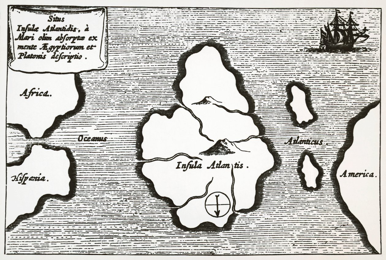 Mappa di Atlantide, da 'Mundus Subterraneus'(Map of Atlantis, from 'Mundus Subterraneus')Athanasius Kircher |