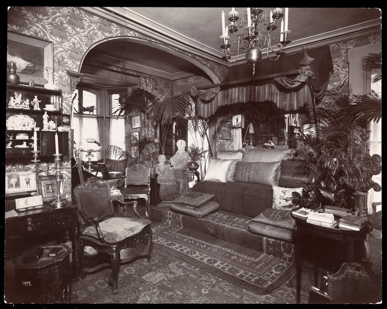 Salotto nella residenza di Elsie de Wolfe al 122 East 17th Street, New York, 1895 o 1896(Sitting room in the residence of Elsie de Wolfe at 122 East 17th Street, New York, 1895 or 1896 (silver gelatin print))Byron Company |