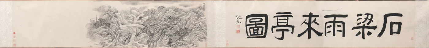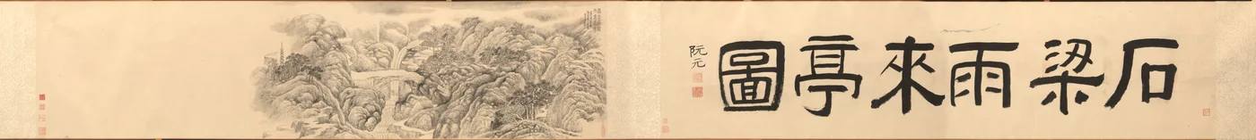 Padiglione della pioggia vicino al ponte di pietra sul Monte Tiantai(Rain-coming Pavilion by the Stone Bridge at Mt. Tiantai, 1848. )Dai Xi |