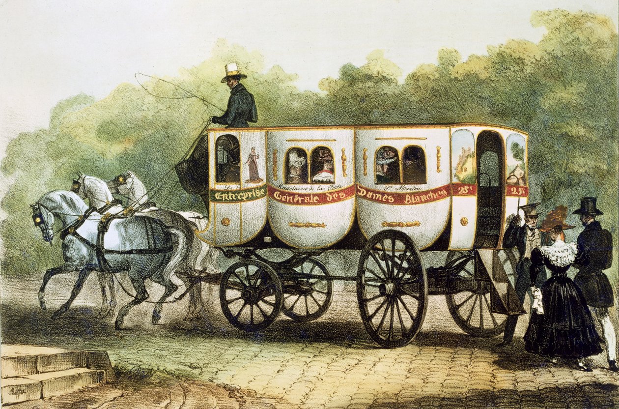 'Enterprise Generale des Dames Blanches', omnibus da Madeleine a Porte Saint-Martin, c.1850('Enterprise Generale des Dames Blanches', omnibus from Madeleine to Porte Saint-Martin, c.1850 )Denis-Auguste-Marie Raffet |