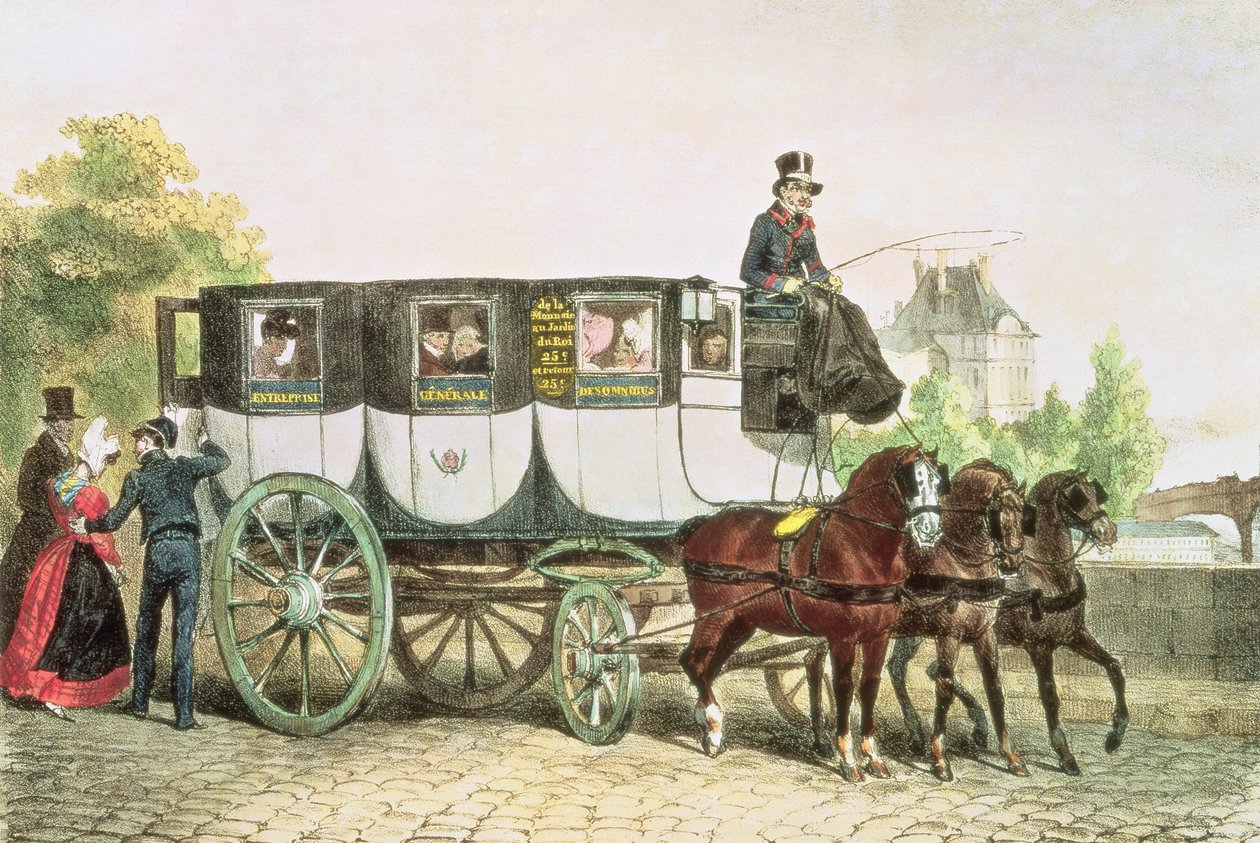 'Entreprise Generale des Omnibus', carrozza da Monnaie a Jardin du Roi('Entreprise Generale des Omnibus', coach from Monnaie to Jardin du Roi, c.1815 )Denis-Auguste-Marie Raffet |