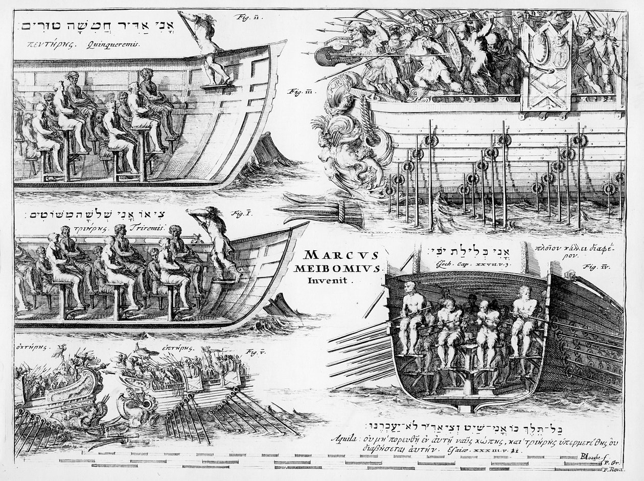 Frontespizio per 'De Fabrica Triremium Liber' di Marcus Meibom, pubblicato nel 1671(Frontispiece for 'De Fabrica Triremium Liber' by Marcus Meibom, published 1671 )Dutch School |