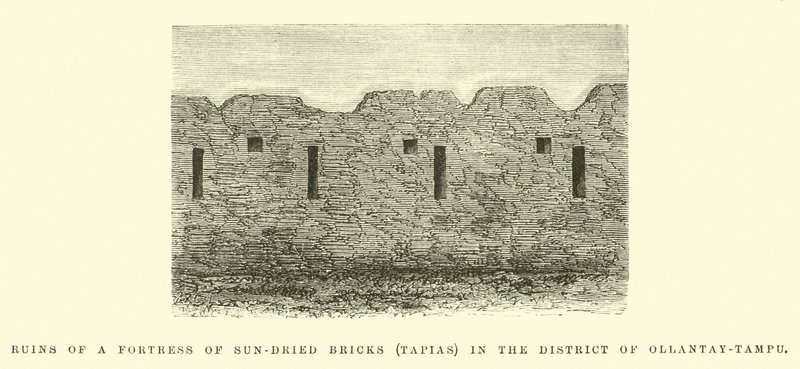 Rovine di una fortezza di mattoni crudi nel Distretto di Ollantay-Tampu(Ruins of a fortress of sun-dried bricks (tapias) in the District of Ollantay-Tampu )Edouard Riou |