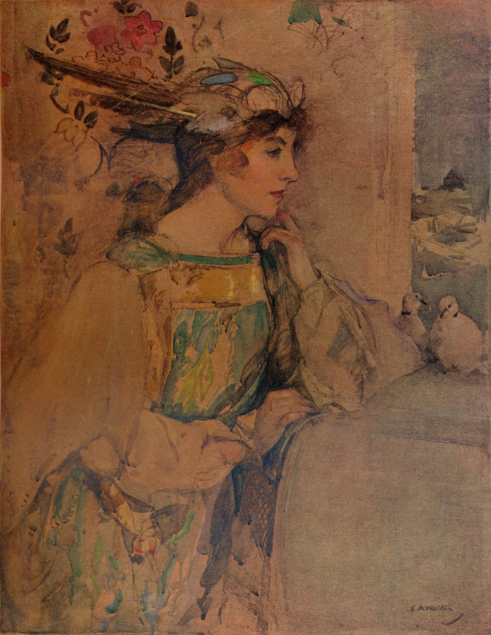 vista laterale · levarsi in piedi · femminile · donne · donna · la gente · interno · gioco · inclinazione · colore · colore · profilo · vestito · dramma · secolo · pensare · casco · signora · una persona · redhead · watercolour · pubblicazione · gli anni 20 · 1900s · ventesimo secolo · watercolour · portrait · studio publications · studio volume 87 · eagerheart · watercolour on wood · edward arthur walton · walton · edward arthur · The Print Collector/Heritage Images |