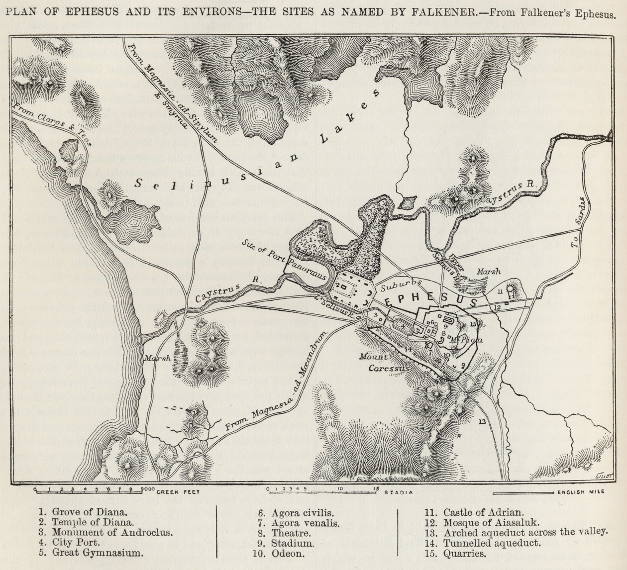 Piano di Efeso e dei suoi dintorni, da 'The Imperial Bible Dictionary', pubblicato da Blackie und Son, c.1880s(Plan of Ephesus and its Environs, from 'The Imperial Bible Dictionary', published by Blackie und Son, c.1880s )Edward Falkener |