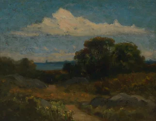 tempo · natura · nube · nubi · scenico · albero · campagna · paesaggio · istruzione · pianta · piante · pittura · roccie · roccia · paese · lago · geografia · colore · paesaggio · posizione · secolo · pastoral · concetto · pittura di olio · gli stati uniti di ameri · colore · istituzione smithsonian · diciannovesimo secolo · istituto scolastico · diciannovesimo secolo · americano · alberi · gli s.u.a. · landscape · edward mitchell bannister · bannister · edward mitchell · oil on canvas · heritage art · Heritage Art/Heritage Images