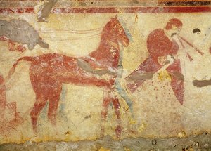 Nebamun riceve offerte da suo figlio, dalla tomba di Nebamun, c.1350 a.C.(Nebamun receiving offerings from his son, from the Tomb of Nebamun, c.1350 BC (mural))Egyptian 18th Dynasty |