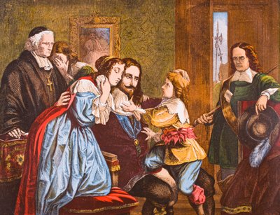 Re Carlo I d'Inghilterra che si congeda dai suoi figli prima della sua esecuzione, da 'Old England's Worthies' di Lord Brougham e altri, pubblicato a Londra, c.1880s(King Charles I of England taking leave of his children before his execution, from 'Old England's Worthies' by Lord Brougham and others, published London, c.1880s )English School |