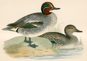 Anatre chiocciole, illustrazione da 'A History of the Birds of Europe Not Observed in the British Isles' di Charles Robert Bree (1811-86), pubblicato nel 1867(Clucking Teal, illustration from 'A History of the Birds of Europe Not Observed in the British Isles' by Charles Robert Bree (1811-86), published 1867 )English School |