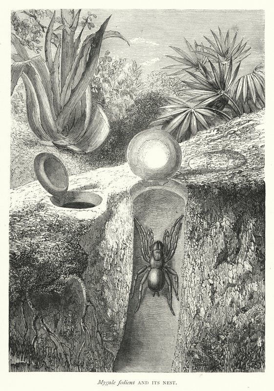 Mygale fodiens e il suo nido (incisione)(Mygale fodiens and its Nest (engraving))English School |