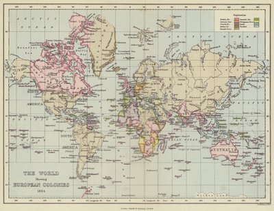 Il mondo che mostra le colonie europee(The world showing European Colonies)English School |
