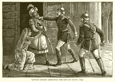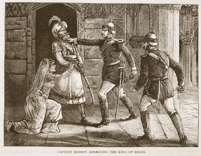 Il capitano Hodson arresta il re di Delhi (incisione)(Captain Hodson arresting the king of Delhi (engraving))English School |