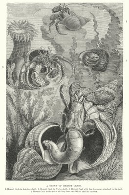 Gruppo di granchi eremiti (incisione)(A Group of Hermit Crabs (engraving))English School |
