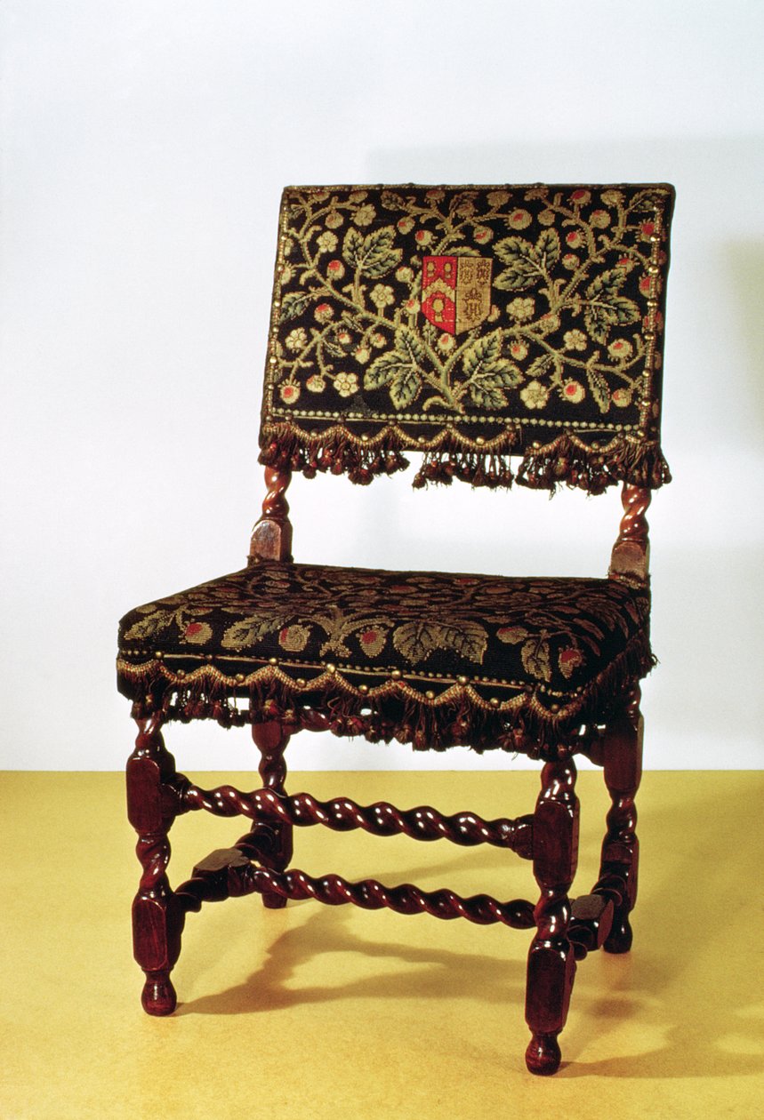 Sedia con traverse a spirale, fine XVII secolo(Chair with spiral stretchers, late 17th century (walnut))English School |
