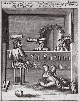 Un quadro che descrive il trattamento stretto dei prigionieri chiusi nella Torre dei Lollardi(A picture describing the strait handling of the close prisoners in Lollards Tower )English School |