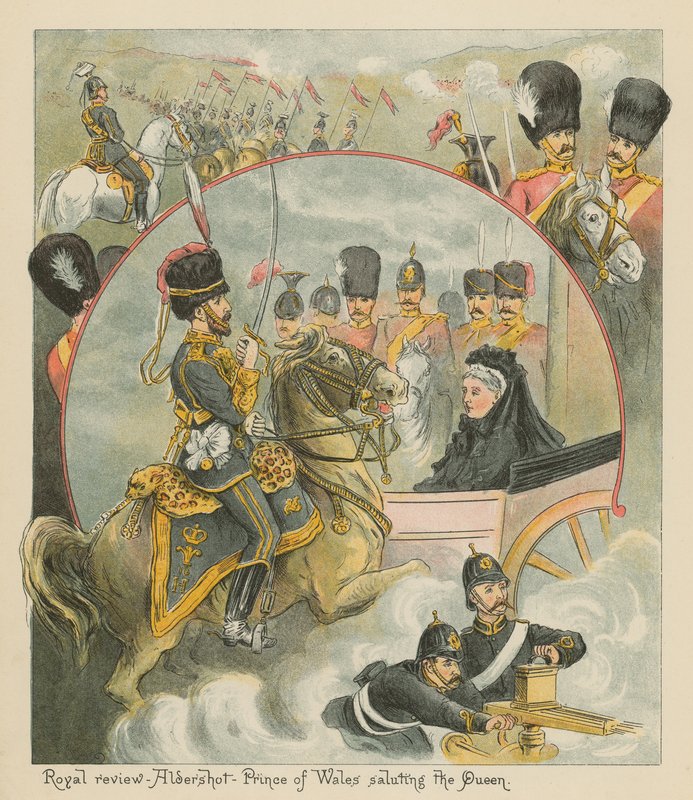 Revisione Reale-Aldershot-Principe di Galles che saluta la Regina(Royal Review-Aldershot-Prince of Wales saluting the Queen )English School |
