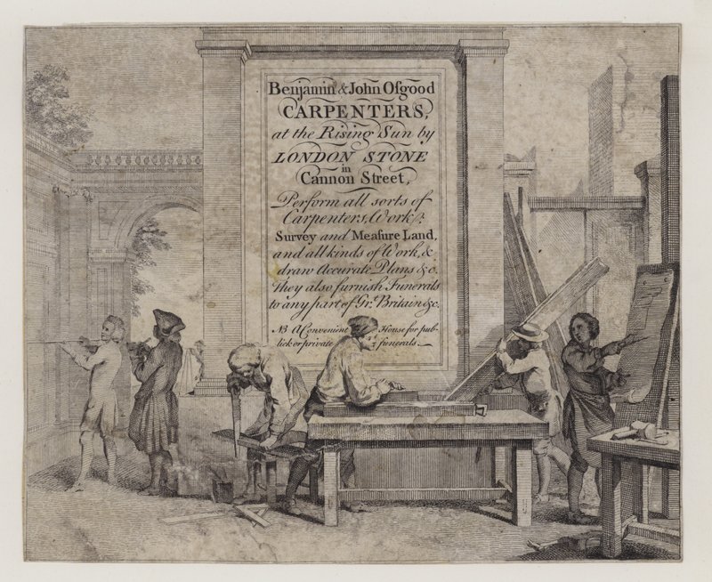 Falegnami, Benjamin e John Osgood, biglietto da visita(Carpenters, Benjamin and John Osgood, trade card )English School |