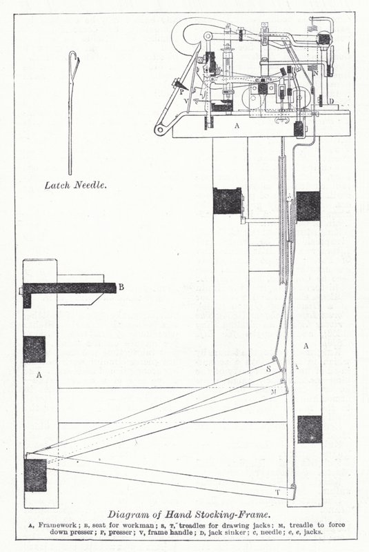 Diagramma del telaio per calze a mano(Diagram of hand stocking frame (litho))English School |