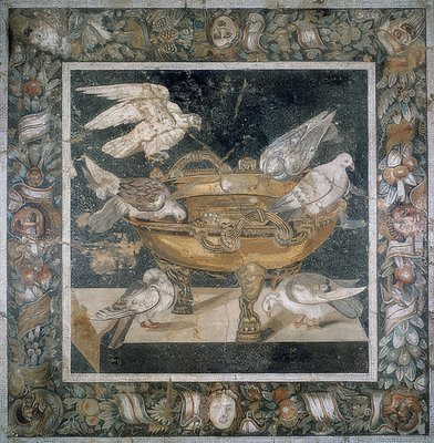 Uccelli che bevono da una ciotola. Mosaico da Pompei, Italia(Birds drinking from a bowl. Mosaic from Pompeii, Italy)Erich Lessing |