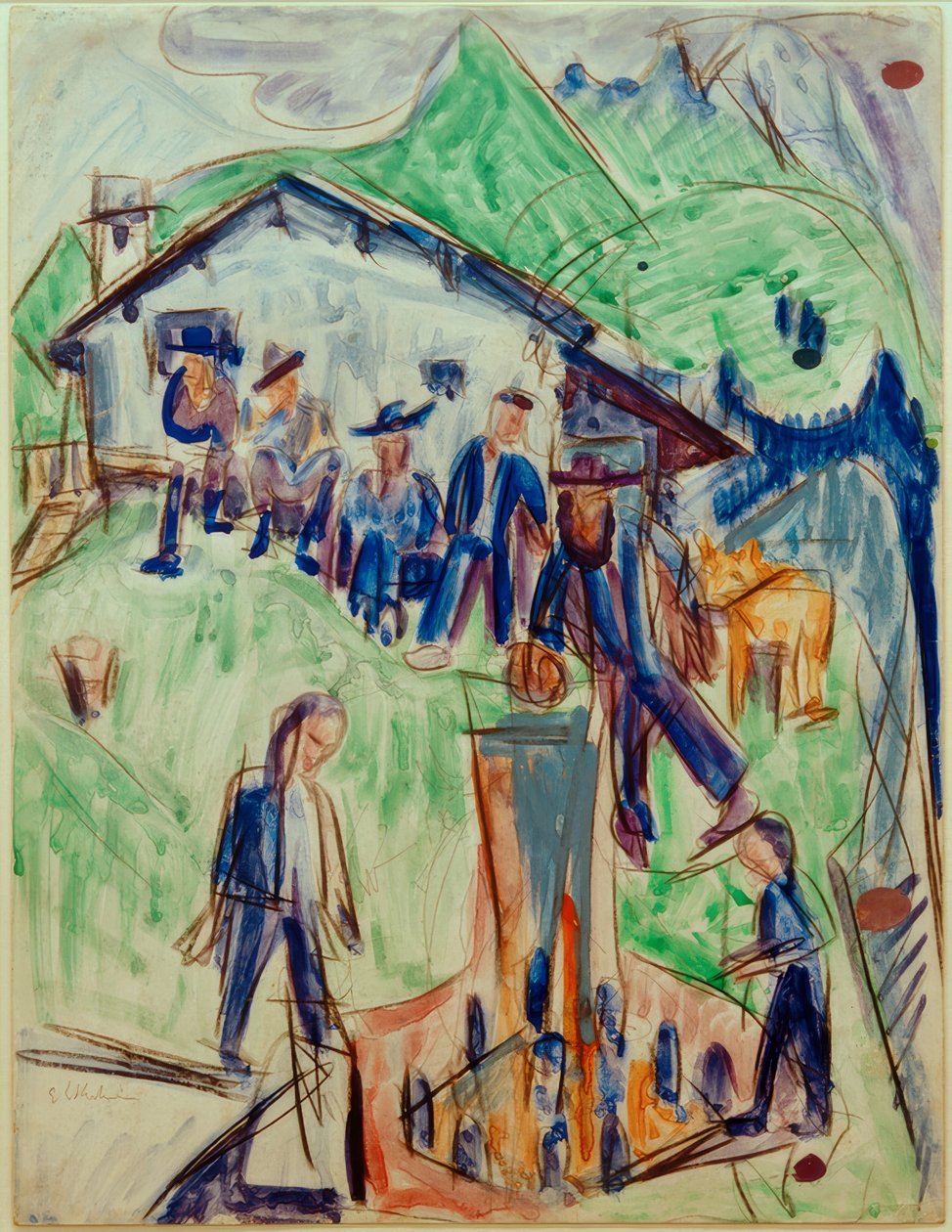 E.L.Kirchner, Contadini alla fontana davanti alla capanna di Stafelalp(E.L.Kirchner, Bauern am Brunnen vor Stafelalp-Hütte)Ernst Ludwig Kirchner |