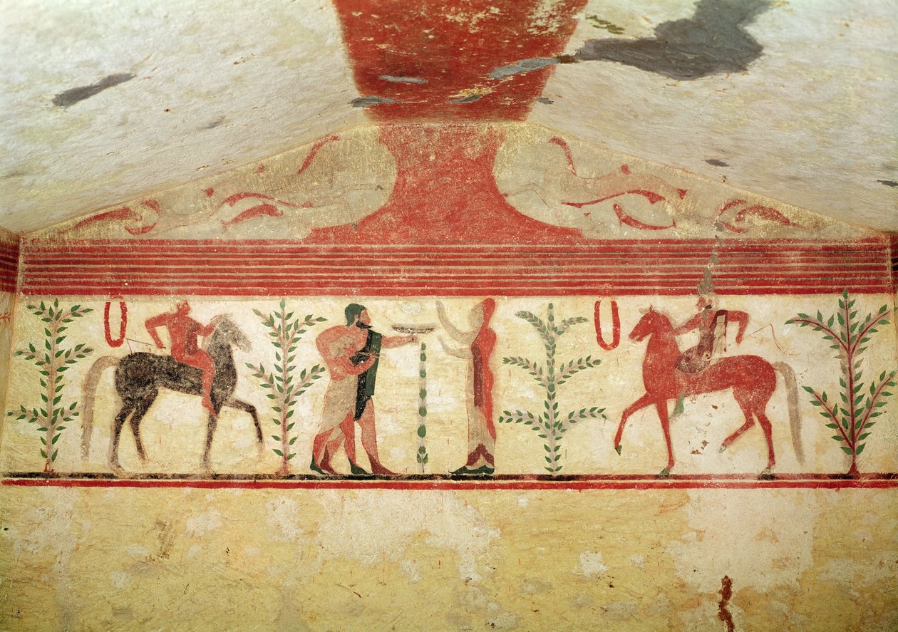 Vista della parete posteriore, Tomba del Barone, c.500 a.C.(View of the back wall, Tomb of the Baron, c.500 BC (wall painting))Etruscan |