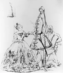 femminile · donne · donna · la gente · maschio · uomo · uomini · coppia · seduta · paese · francese · francia · modello · uomo · copricapo · vestito · astuto · tenda · posizione · secolo · abbigliamento · floreale · signora · concetto · lunghezza completa · monocromo · vita quotidiana · modellato · diciannovesimo secolo · nero bianco · nero e bianco · diciannovesimo secolo · art media · portrait · eugene deveria · eugene francois marie joseph deveria · eugene joseph deveria · eugene francois deveria · deveria · eugene · Art Media/Heritage Images |