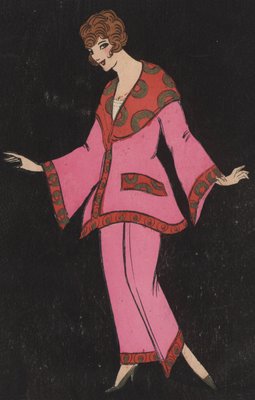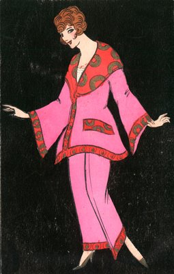 Ragazza in tailleur pantalone (litografia a colori)(Girl in a trouser suit (colour litho))European School |