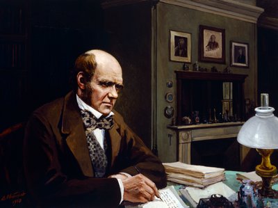 (Charles Darwin, British naturalist and evolutionary scientist, working in his study room (painting on canvas))Evstafieff Evstafieff |