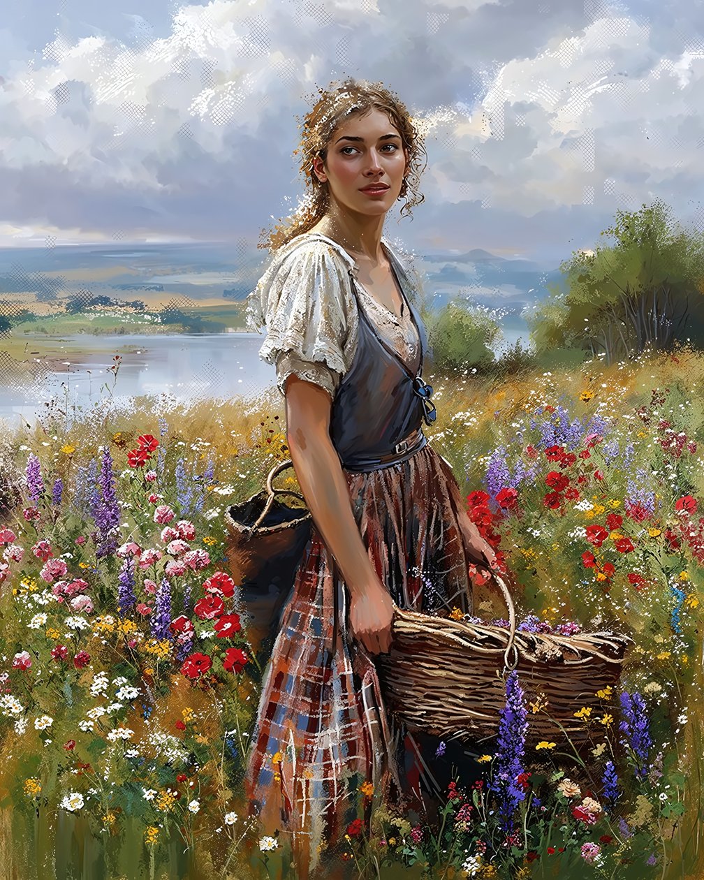 Una bella contadina che raccoglie i frutti in primavera, stampe d'arte online(A beautiful peasant woman harvesting fruits in spring, online art prints)F. Abderrahim |