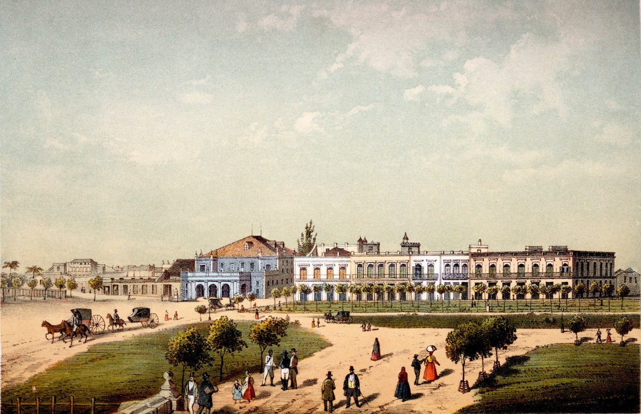 Teatro de Tacon e parte del Paseo de Isabel II, visto dalla Porta di Monseratte, 1840(Teatro de Tacon and part of Paseo de Isabel II, seen from the Gate of Monseratte, 1840 )Federico Mialhe |