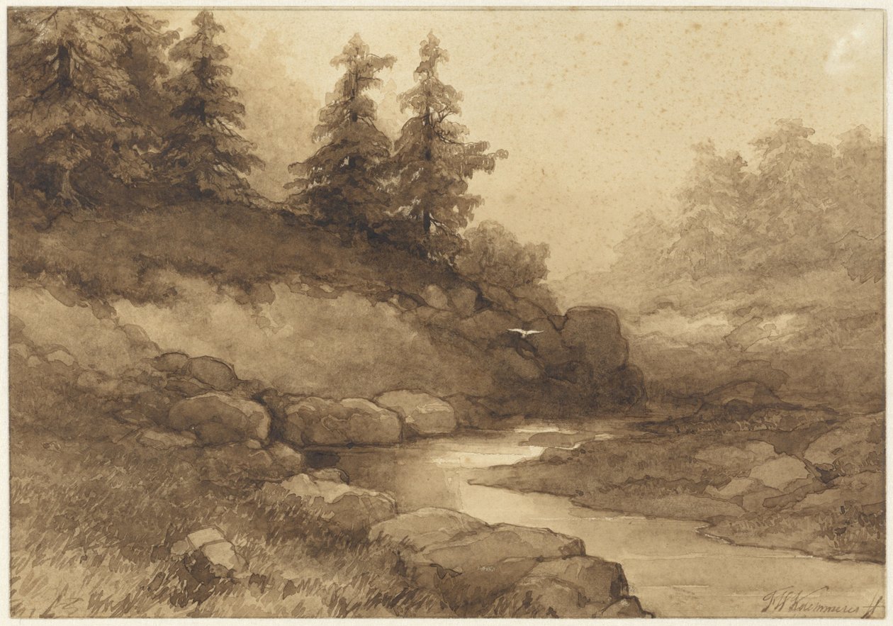 Paesaggio collinare con un fiume(Heuvelachtig landschap met een rivier)Frederik Hendrik Kaemmerer(draughtsman) |