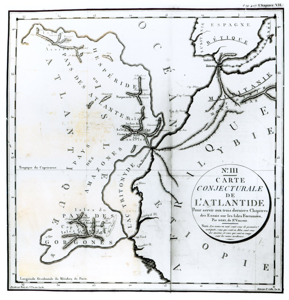No. III Mappa congetturale dell'isola di Atlantide, disegnata da Bory di St-Vincent e incisa da E. Collin(No. III Conjectural Map of the Island of Atlantis, drawn by Bory of St-Vincent and engraved by E. Collin )French School |