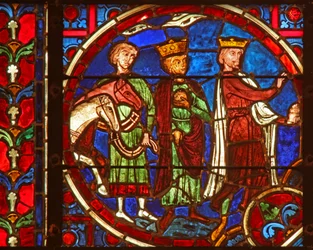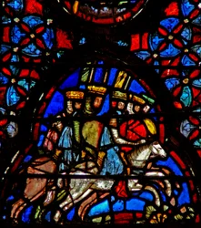 Volti medievali(Window w04 depicting medieval faces )French School |