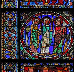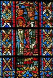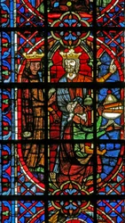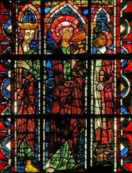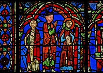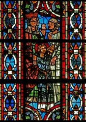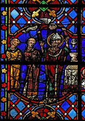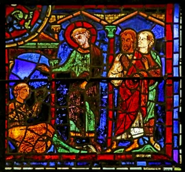 Finestra w202 raffigurante una scena della leggenda di San Giovanni: il santo e la coppa avvelenata(Window w202 depicting a scene from the legend of St John: the saint and the poisoned cup )French School |