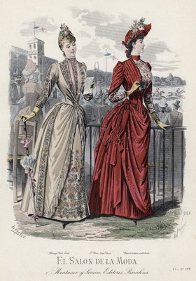Tavola di moda francese, fine XIX secolo(French fashion plate, late 19th century )French School |