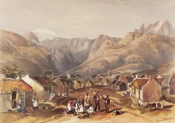 Nella serena valle di Genadendal si trova un fiorente villaggio ottentotto(In the serene valley of Genadendal lies a thriving Hottentot village)George French Angas |