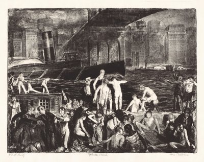 trasporto · trasporto · città · costruzione · la gente · maschio · ragazzo · ragazzi · bambino · bambini · barca · barche · arti · swimming · new york · grattacielo · paese · gioco · bagnarsi · nudo · nudo · arte · ponte · ponti · washington · struttura · posizione · secolo · crogiolo di vapore · galleria · ponte di brooklyn · cambiare · swimmer · swimmers · east river · nudità · galleria d'arte · nudità · gli stati uniti di ameri · realismo · galleria nazionale di arte · 1900s · ventesimo secolo · americano · gli s.u.a. · lithograph · landscape · george wesley bellows · bellows · george wesley · george bellows · bellows · george · art centre · heritage art · print · lithograph in black on wove paper · Heritage Art/Heritage Images