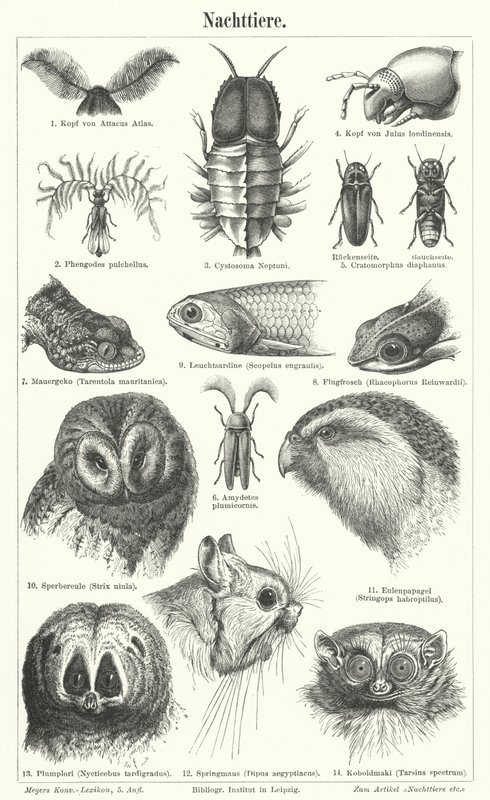 Animali notturni (incisione)(Nocturnal animals (engraving))German School |